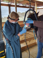 Aufgrund unserer modernen Ausstattung können wir im Stall sowohl die Zahnwurzeln und Kieferhöhlen röntgen, als auch erkrankte Backenzähne am stehenden Pferd ohne Eröffnung der Kieferhöhle ziehen.