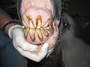 Spätestens bei folgenden Symptomen MUSS Ihr Pferd auf den Zahnarztstuhl: plötzliche Unrittigkeit, Futter fällt aus dem Maul (Kauen von Wickeln/Pfriemen), übler Maulgeruch, einseitiger, stinkender